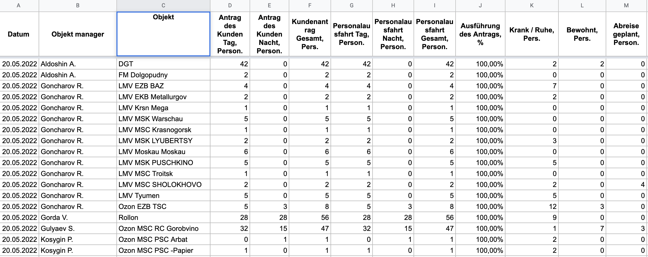 Wir haben uns entschieden, die Arbeit mit einem Parser zu beginnen. Täglich haben wir die Dateien im xlsx-Format per Email erhalten. Sie sehen so aus: